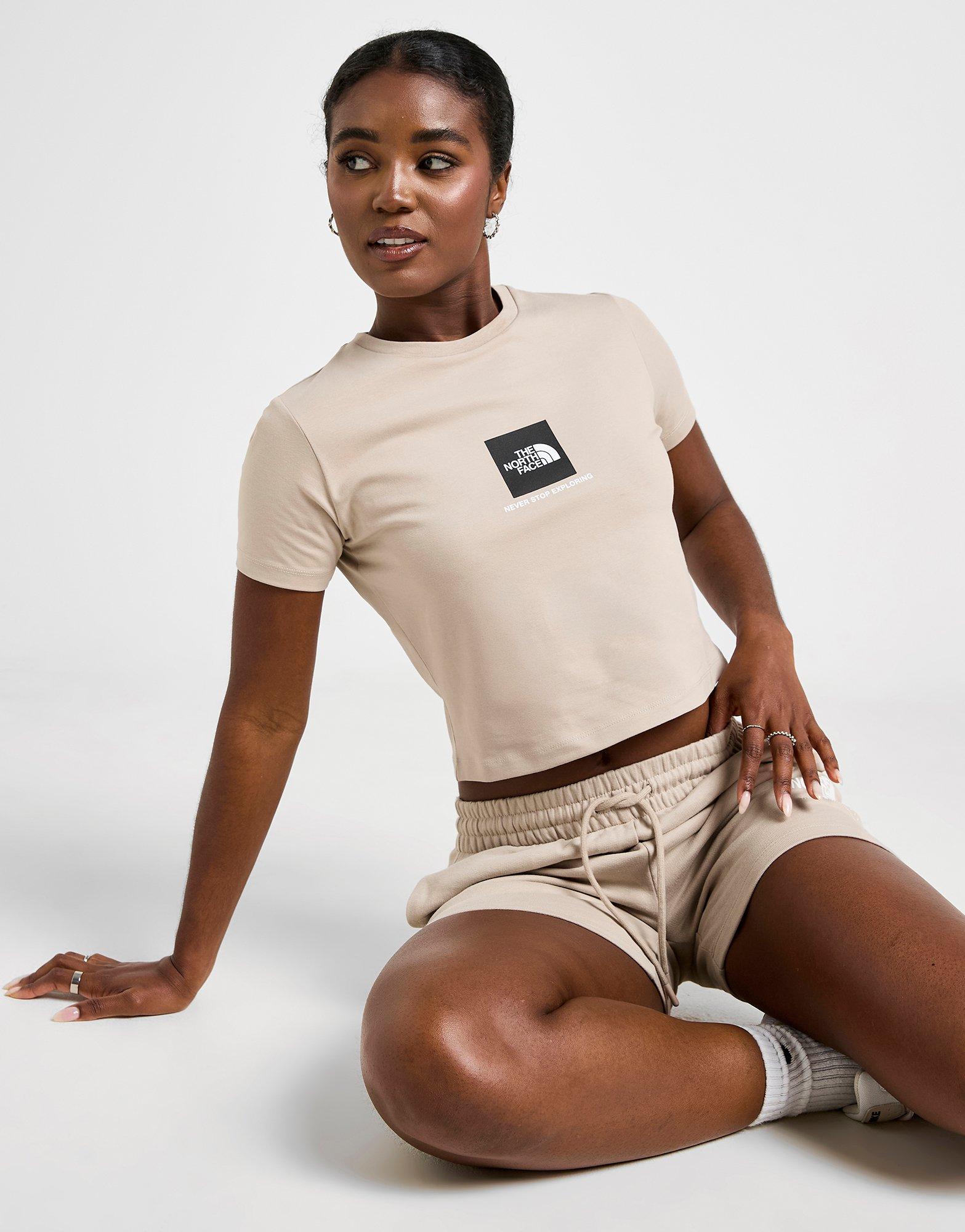 Geef je dagelijkse outfit een opfrisbeurt met dit Box Graphic Slim T-shirt voor dames van The North Face. Dit exclusieve JD-shirt in beige met zwarte accenten is gemaakt van zacht katoen voor langdurig comfort. Het heeft een geribbelde ronde hals, korte mouwen en een cropped zoom voor optimaal draagcomfort. Het is voorzien van een boxlogo op de borst en een Half Dome-merk op de achterkant van de schouder. Machinewasbaar. | Ons model is 1,70 m lang en draagt maat S.