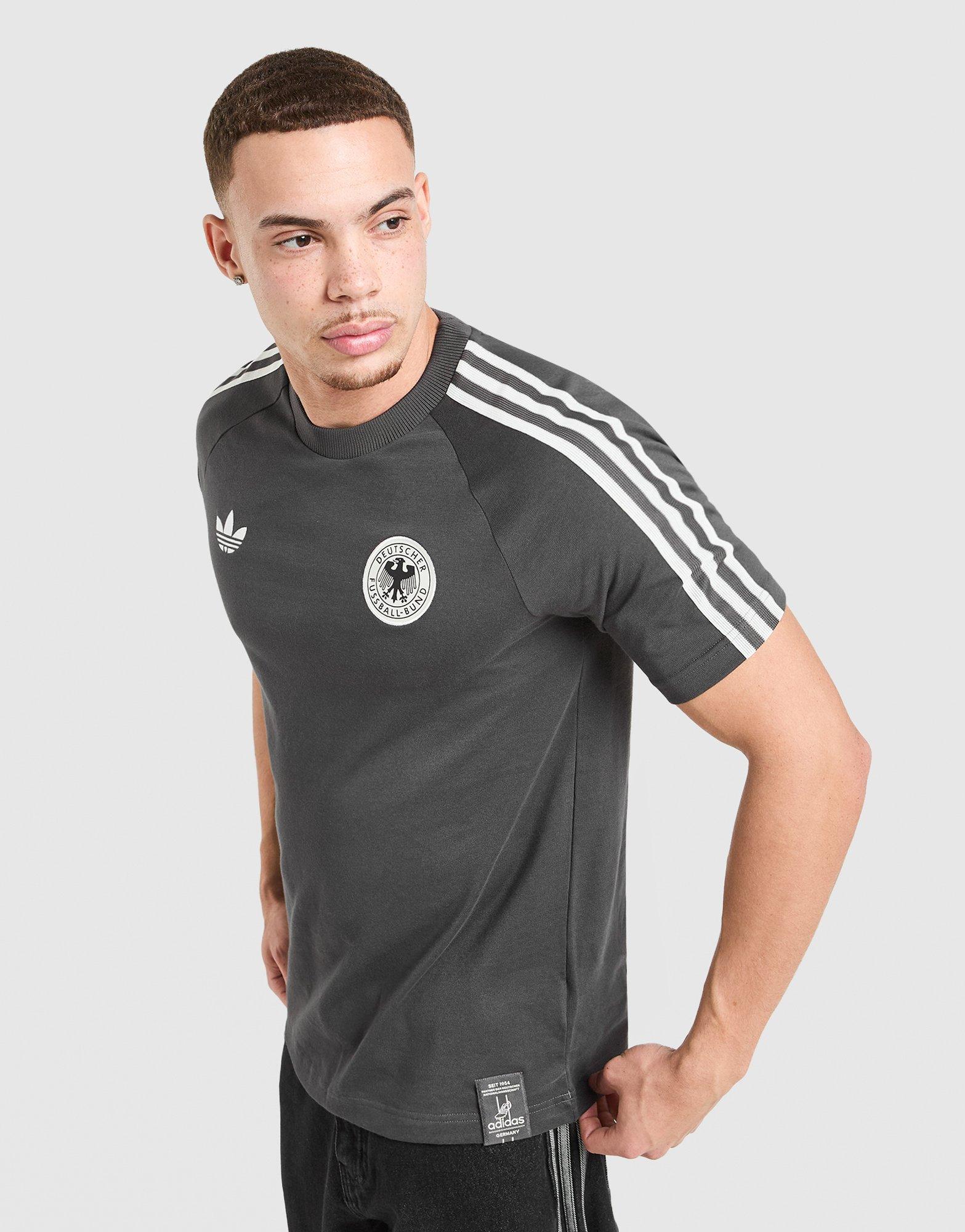 Geef je wedstrijdoutfit een upgrade. Dit originele Duitsland T-shirt voor heren van adidas Originals is gemaakt van soepele en duurzame stof. Met zijn retro-uitstraling heeft het een slim fit model en is het verkrijgbaar in Utility Black. Afgewerkt met het Trefoil-logo, de 3 strepen en het clubembleem. Machinewasbaar | KG5097