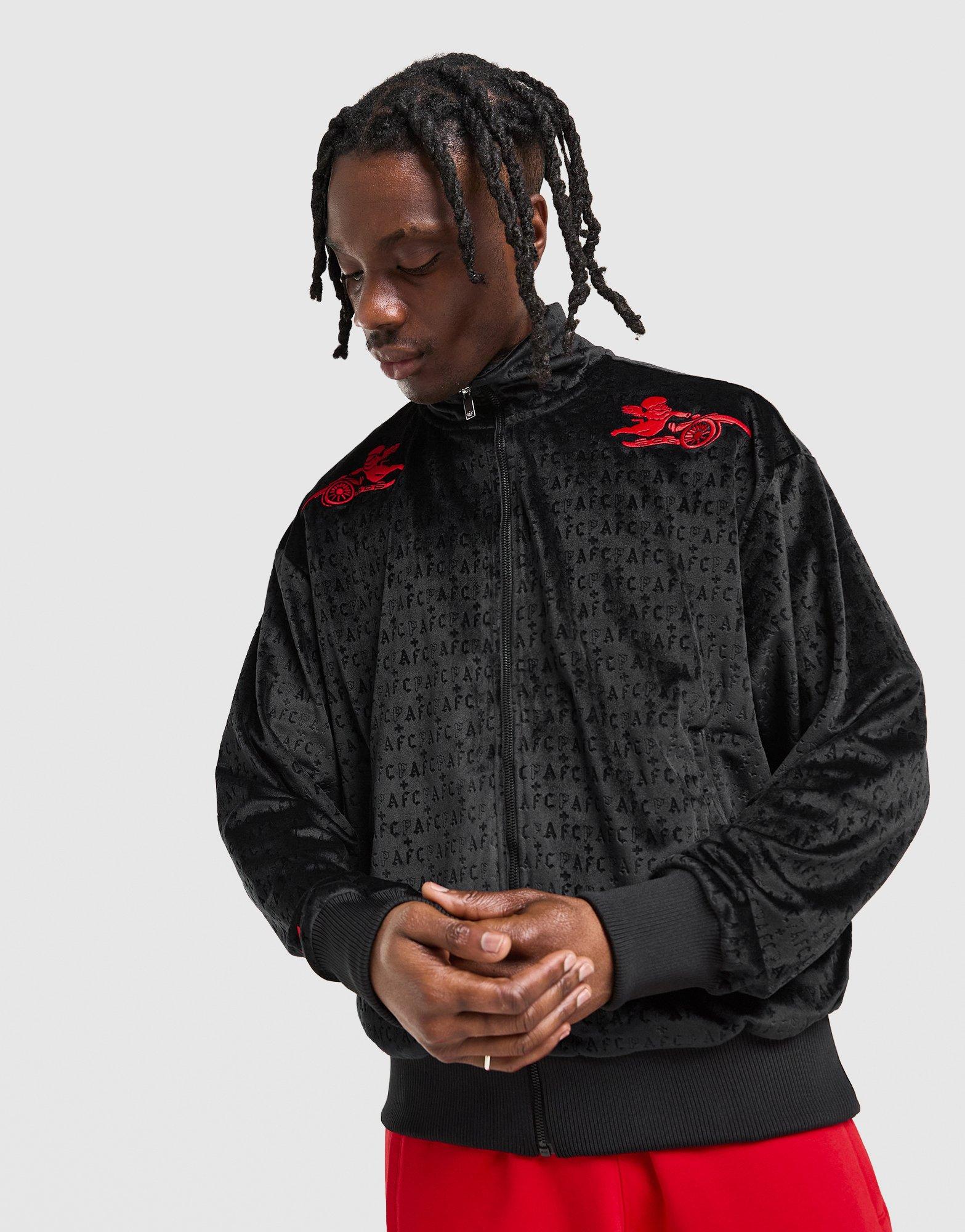 Geef je Arsenal-trots een stoere streetstyle-look met dit Arsenal FC Places Faces trainingsjack voor heren van adidas Originals. Het zwarte, elastische velours jack is voorzien van subtiele AFC x PF-branding en contrasterende Arsenal- en Places Faces-badges op de schouders. Het jack heeft een ritssluiting aan de voorkant, dikke ribboorden en een opstaande kraag voor die klassieke trainingsjack-look. Afgewerkt met zijzakken met ritssluiting en een Trefoil-logo. Machinewasbaar. | Ons model is 1,83 m lang, heeft een borstomvang van 89 cm en draagt maat M. | KC1181