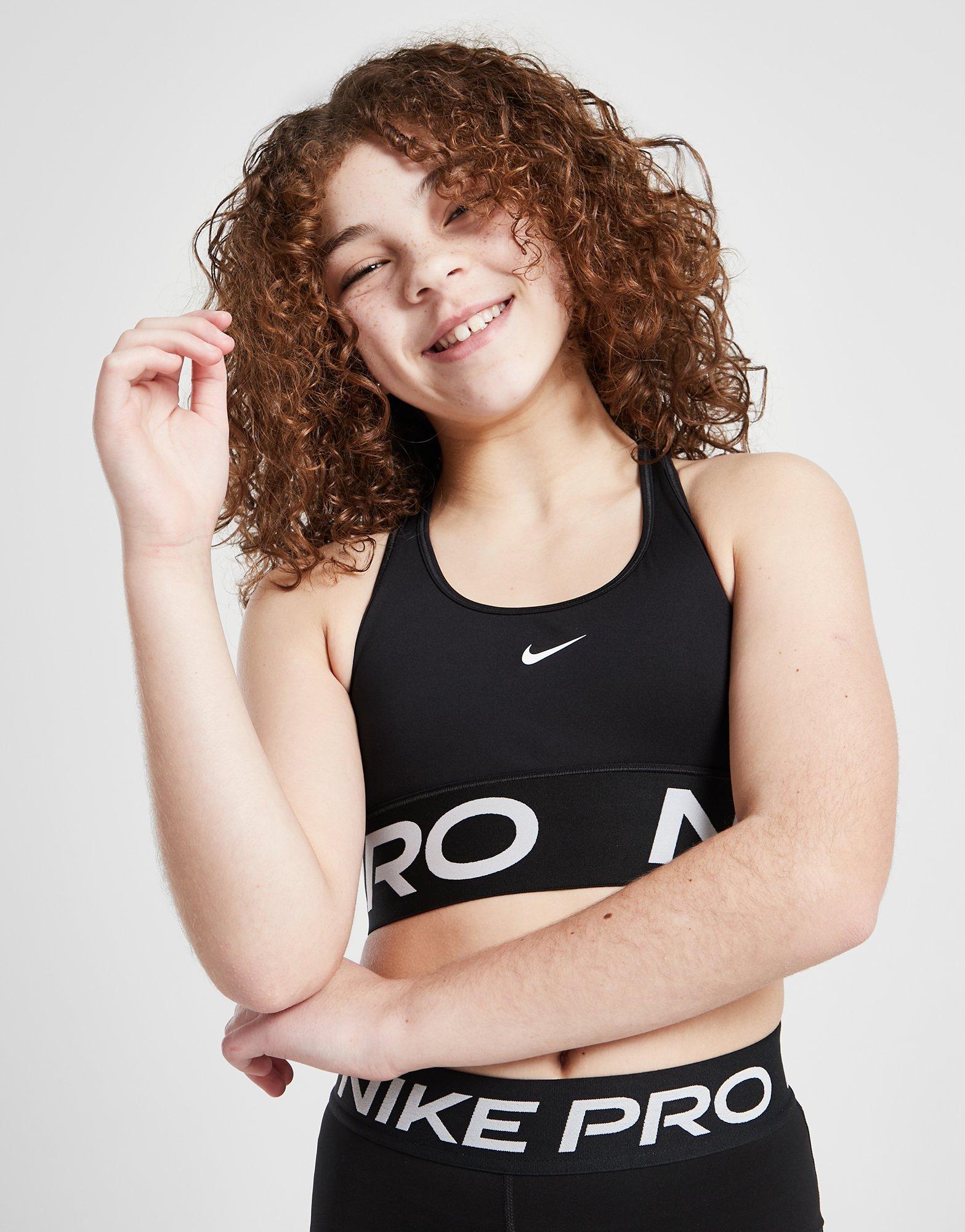 Ga in stijl aan de slag met deze Junior Fitness Pro Sport-bh voor meisjes van Nike. Deze zwarte sportbeha is gemaakt van twee lagen rekbaar polyester voor extra duurzaamheid en bedekking wanneer je onderweg bent. Het beschikt over brede banden en een elastische onderband voor totale ondersteuning, terwijl het racerback-ontwerp hem onbeperkt houdt. Deze bh maakt gebruik van zweetafvoerende Dri-FIT technologie om je koel te houden en is afgewerkt met contrasterende Nike Pro-branding en de kenmerkende Swoosh. Mag in de wasmachine.