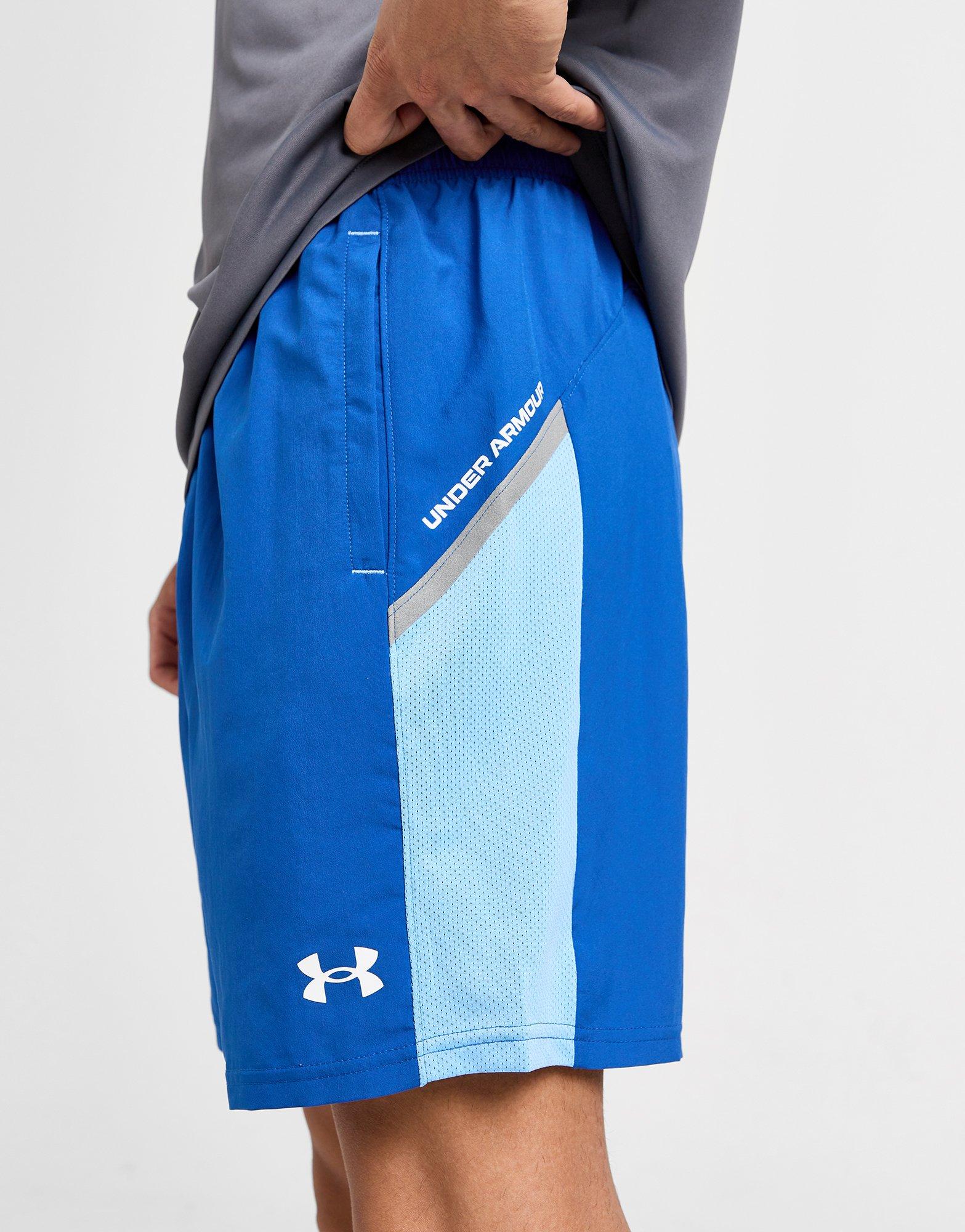 Geef je workout essentials een opfrisbeurt met deze Tech Woven Shorts voor heren van Under Armour. Deze shorts met standaard pasvorm in een blauwe kleurstelling zijn gemaakt van glad, duurzaam geweven materiaal voor langdurig comfort. Ze zijn ontworpen met zweetafvoerende technologie, hebben luchtige mesh zijpanelen en een elastische tailleband met een trekkoord om de pasvorm aan te passen. Ze hebben zijzakken om je spullen in op te bergen en zijn afgewerkt met het kenmerkende Under Armour-merk. Machinewasbaar. | Ons model draagt maat medium.