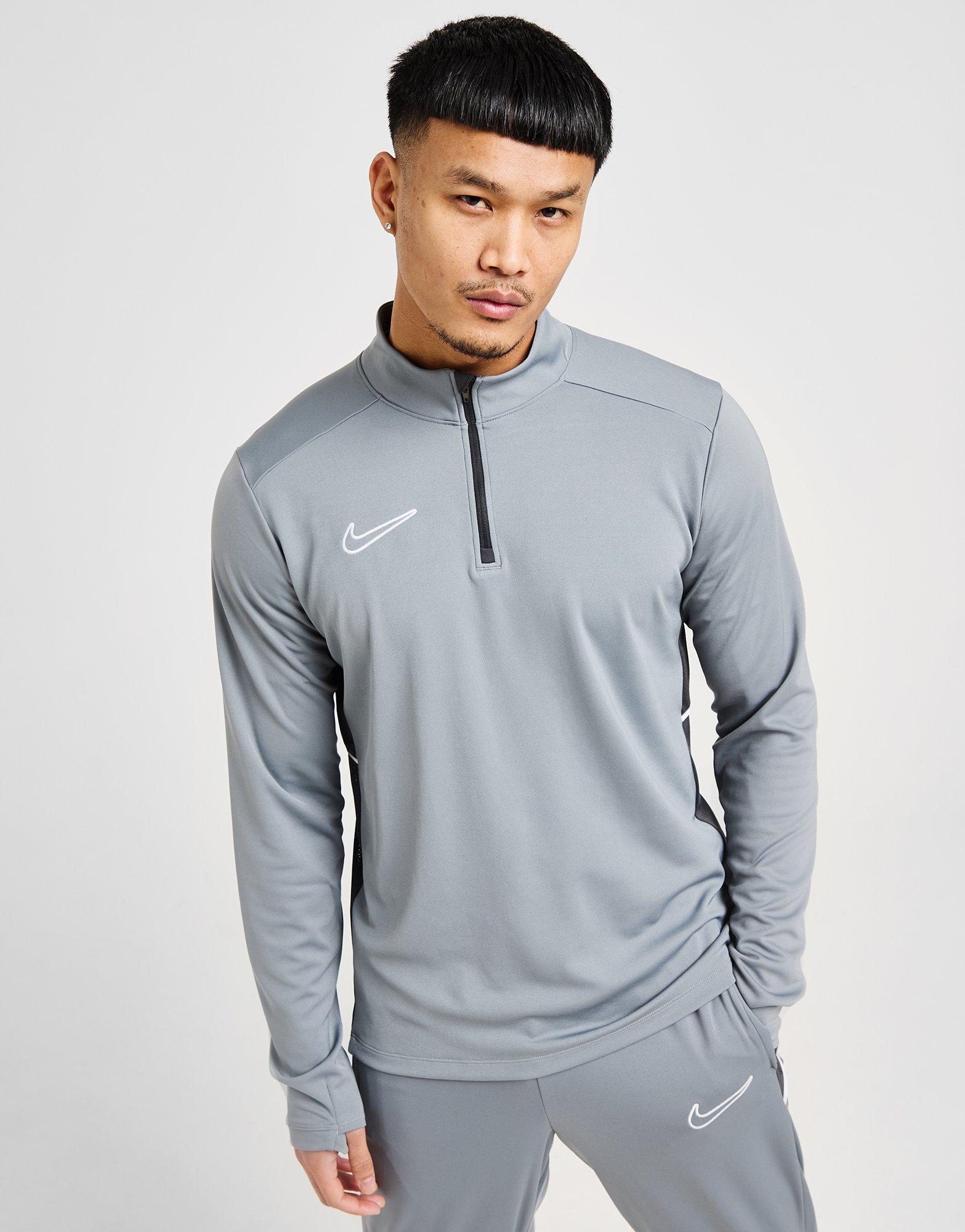 Bereid je voor op trainingsdagen met deze Academy 1/4 Zip Top voor heren van Nike. Deze exclusieve top van JD is verkrijgbaar in de kleuren Cool Grey, Anthracite en White en is gemaakt van een gladde gebreide stof voor langdurig comfort. Hij heeft een kwartritssluiting en een opstaande kraag voor extra bedekking, met duimgaten in de manchetten om je vast te zetten. De mesh zijpanelen bieden extra ventilatie, terwijl Dri-FIT zweetafvoerende technologie je droog houdt terwijl je hard werkt. Als laatste is hij voorzien van de kenmerkende Swoosh op de borst. Machinewasbaar. | Ons model is 6'0" met een borstomvang van 40" en draagt maat M.
