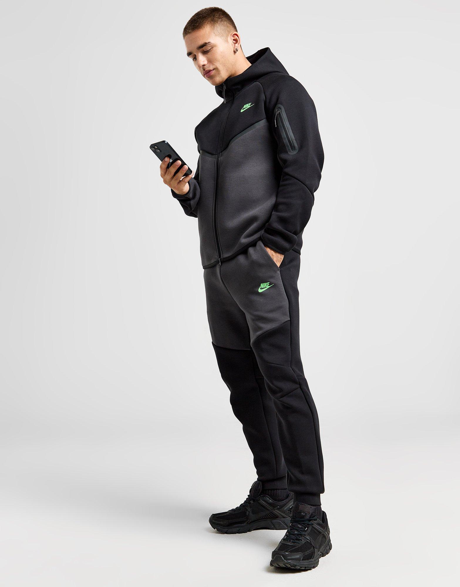 Geef je streetwear een premium tintje met deze Tech Fleece Joggers voor heren van Nike. Deze slim-fit broek in een zwart-antraciet kleurstelling is gemaakt van gladde fleecestof aan de binnen- en buitenkant die lichtgewicht maar toch ultrawarm is. Ze hebben een verstelbare tailleband met trekkoord, omgeslagen zomen en gearticuleerde naden, terwijl een getapete Tech-zak je essentials op hun plek houdt. Afgewerkt met een Green Strike Nike Futura-badge. Machinewasbaar. | Ons model draagt maat medium.