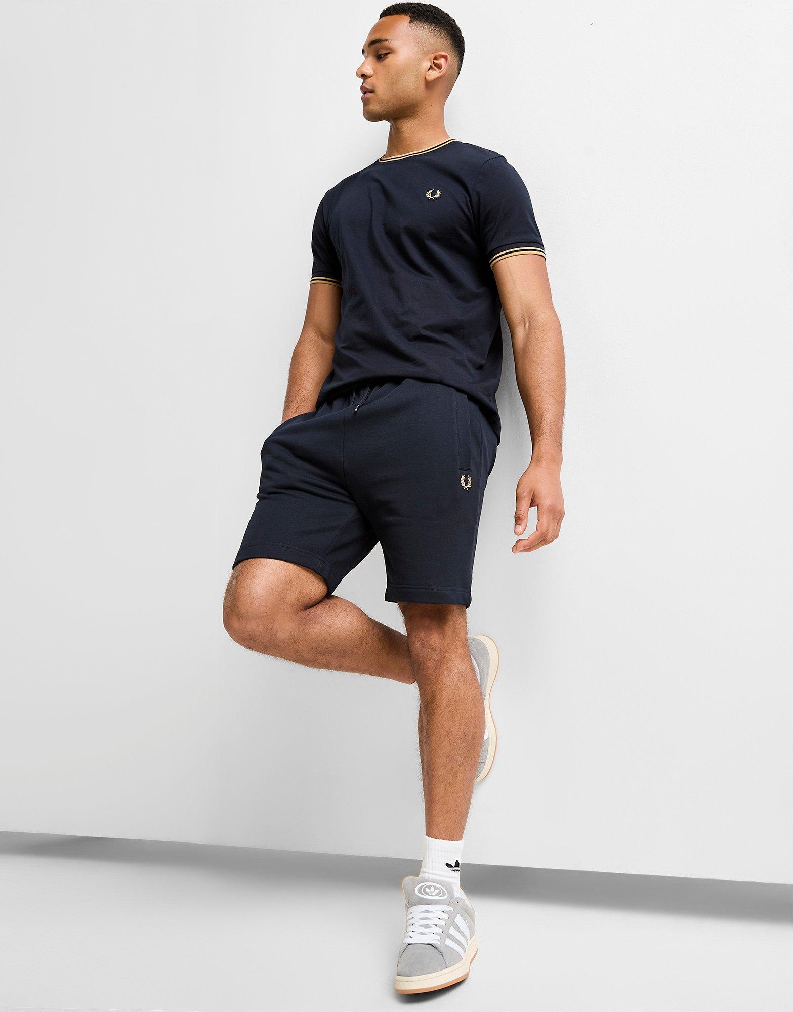 Fred Perry combineert premium comfort met deze Twin Tip Shorts voor heren. Deze regular-fit shorts zijn exclusief verkrijgbaar bij JD en gemaakt van zacht katoen in een marineblauwe kleur. Ze hebben een elastische tailleband met een verstelbaar trekkoord voor een persoonlijke pasvorm en open zakken aan de zijkant. Afgewerkt met het iconische Laurel Wreath-logo geborduurd op de pijp. Machinewasbaar. | Ons model is 1,85 m lang en draagt maat M.