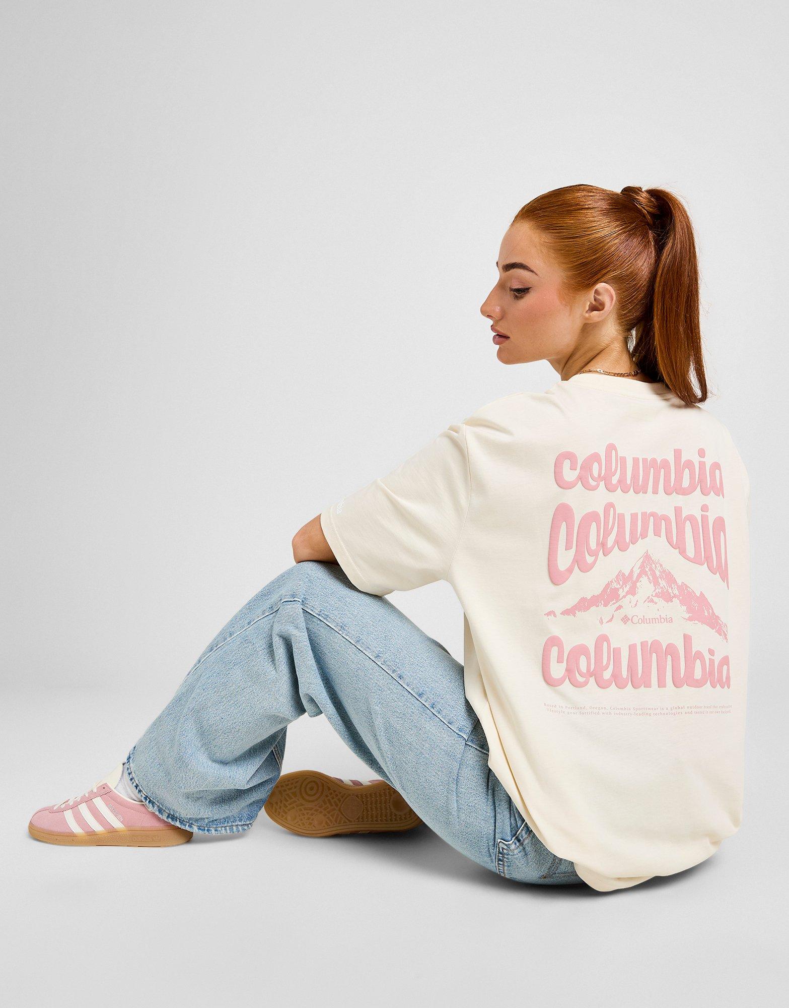 Neem het rustig aan met dit geweldige dames T-shirt van Columbia. Alleen bij JD verkrijgbaar: dit outdoor-geïnspireerde shirt heeft roze Columbia-merklogo en berggraphics op de voor- en achterkant. De baggy pasvorm en het zachte katoen zorgen samen voor maximaal comfort. Afgewerkt met een klassieke ronde kraag. Machinewasbaar. | Ons model draagt maat S.